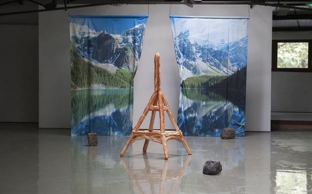 L’artificialité des constructions humaines, qu’elles soient physiques ou mentales, se livre avec malice, voire avec tendresse, au travers des vues de rochers stylisés imités de la nature : des icebergs, des rochers, ancrés au sol, abritent des dispositifs ambigus de soustraction, tandis que la puissance indicielle des représentations, bibelots, cartes postales ou film pédagogique, écrase tout rapport au réel.